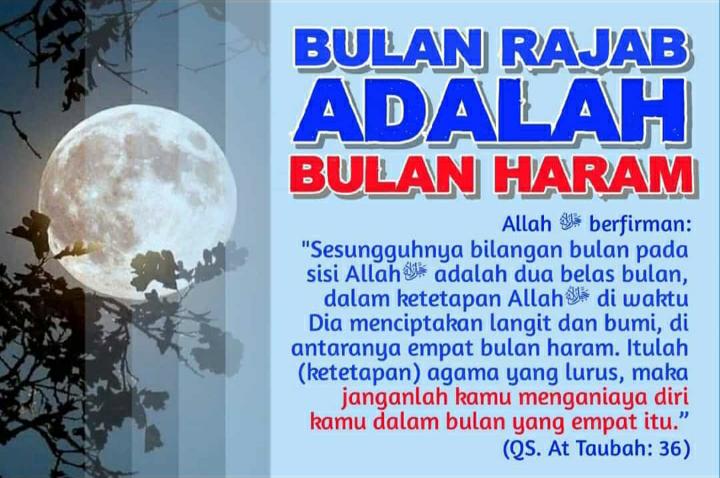 Berarti, bulan Rajab adalah satu dari empat bulan yang di muliakan oleh Allah SWT, bersama dengan bulan Zulkaidah, Zulhijah, dan Muharam.